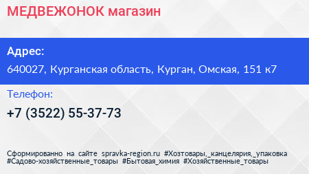 МЕДВЕЖОНОК, магазин по адресу 640027, Курганская область, Курган, Омская, 151 к7 в дальнейшем Организация, размещена в следующих категориях: