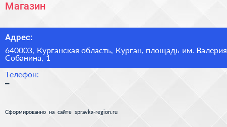 Магазин по адресу 640003, Курганская область, Курган, площадь им. Валерия Собанина, 1 в дальнейшем Организация, размещена в следующих категориях:
