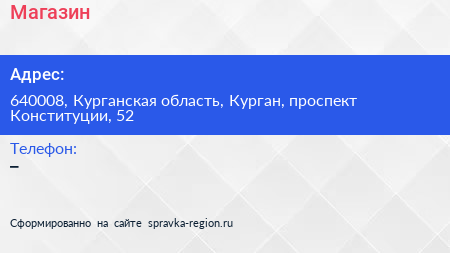 Магазин по адресу 640008, Курганская область, Курган, проспект Конституции, 52 в дальнейшем Организация, размещена в следующих категориях: