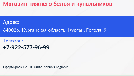 Магазин нижнего белья и купальников по адресу 640026, Курганская область, Курган, Гоголя, 9 в дальнейшем Организация, размещена в следующих категориях: