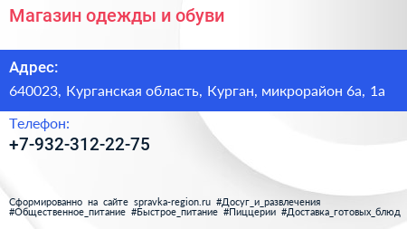 Магазин одежды и обуви по адресу 640023, Курганская область, Курган, микрорайон 6а, 1а в дальнейшем Организация, размещена в следующих категориях: