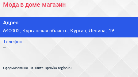 Мода в доме, магазин по адресу 640002, Курганская область, Курган, Ленина, 19 в дальнейшем Организация, размещена в следующих категориях: