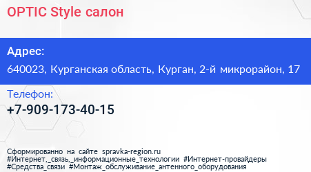 OPTIC Style, салон по адресу 640023, Курганская область, Курган, 2-й микрорайон, 17 в дальнейшем Организация, размещена в следующих категориях: