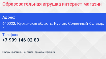 Образовательная игрушка, интернет-магазин по адресу 640032, Курганская область, Курган, Солнечный бульвар, 2 в дальнейшем Организация, размещена в следующих категориях: