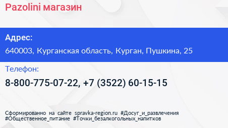 Pazolini, магазин по адресу 640003, Курганская область, Курган, Пушкина, 25 в дальнейшем Организация, размещена в следующих категориях: