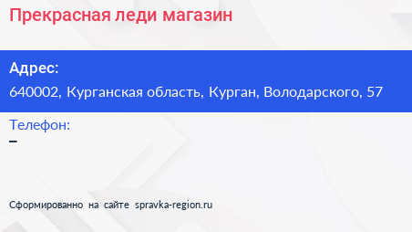 Прекрасная леди, магазин по адресу 640002, Курганская область, Курган, Володарского, 57 в дальнейшем Организация, размещена в следующих категориях: