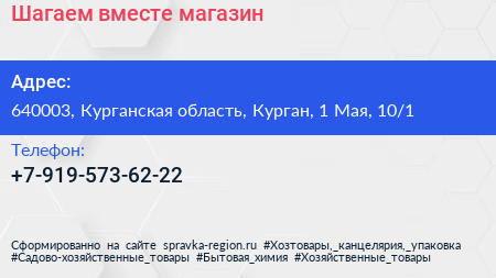 Шагаем вместе, магазин по адресу 640003, Курганская область, Курган, 1 Мая, 10/1 в дальнейшем Организация, размещена в следующих категориях: