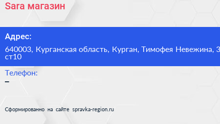Sara, магазин по адресу 640003, Курганская область, Курган, Тимофея Невежина, 3 ст10 в дальнейшем Организация, размещена в следующих категориях: