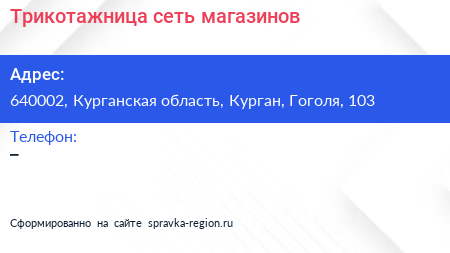 Трикотажница, сеть магазинов по адресу 640002, Курганская область, Курган, Гоголя, 103 в дальнейшем Организация, размещена в следующих категориях: