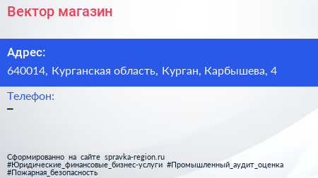 Вектор, магазин по адресу 640014, Курганская область, Курган, Карбышева, 4 в дальнейшем Организация, размещена в следующих категориях: