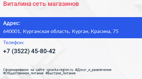 Виталина, сеть магазинов по адресу 640001, Курганская область, Курган, Красина, 75 в дальнейшем Организация, размещена в следующих категориях: