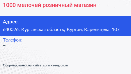1000 мелочей, розничный магазин по адресу 640026, Курганская область, Курган, Карельцева, 107 в дальнейшем Организация, размещена в следующих категориях: