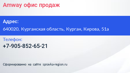Amway, офис продаж по адресу 640020, Курганская область, Курган, Кирова, 51а в дальнейшем Организация, размещена в следующих категориях: