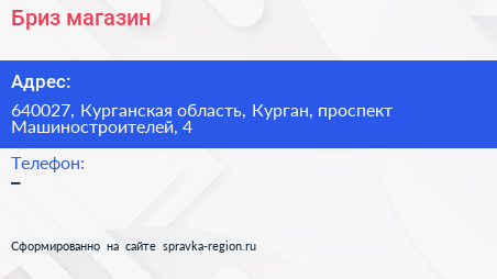 Бриз, магазин по адресу 640027, Курганская область, Курган, проспект Машиностроителей, 4 в дальнейшем Организация, размещена в следующих категориях: