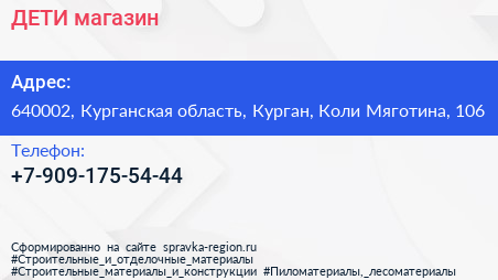 ДЕТИ, магазин по адресу 640002, Курганская область, Курган, Коли Мяготина, 106 в дальнейшем Организация, размещена в следующих категориях: