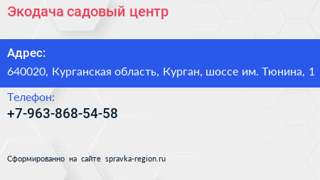 Экодача, садовый центр по адресу 640020, Курганская область, Курган, шоссе им. Тюнина, 1 в дальнейшем Организация, размещена в следующих категориях: