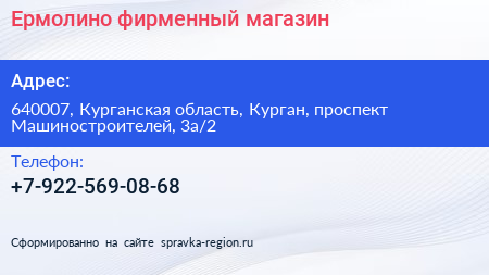 Ермолино, фирменный магазин по адресу 640007, Курганская область, Курган, проспект Машиностроителей, 3а/2 в дальнейшем Организация, размещена в следующих категориях:
