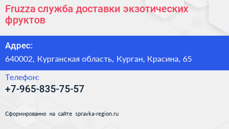 Fruzza, служба доставки экзотических фруктов по адресу 640002, Курганская область, Курган, Красина, 65 в дальнейшем Организация, размещена в следующих категориях: