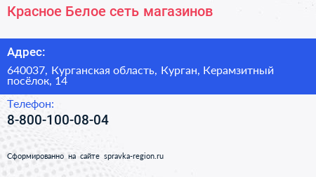 Красное & Белое, сеть магазинов по адресу 640037, Курганская область, Курган, Керамзитный посёлок, 14 в дальнейшем Организация, размещена в следующих категориях: