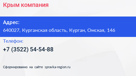 Крым, компания по адресу 640027, Курганская область, Курган, Омская, 146 в дальнейшем Организация, размещена в следующих категориях: