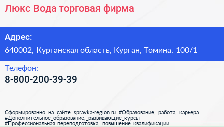 Люкс Вода, торговая фирма по адресу 640002, Курганская область, Курган, Томина, 100/1 в дальнейшем Организация, размещена в следующих категориях: