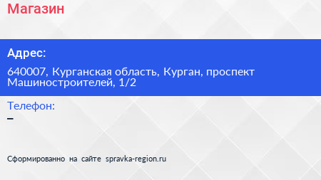 Магазин по адресу 640007, Курганская область, Курган, проспект Машиностроителей, 1/2 в дальнейшем Организация, размещена в следующих категориях: