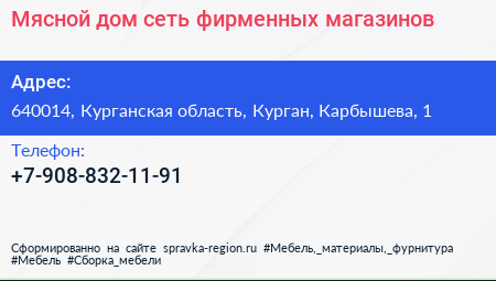Мясной дом, сеть фирменных магазинов по адресу 640014, Курганская область, Курган, Карбышева, 1 в дальнейшем Организация, размещена в следующих категориях: