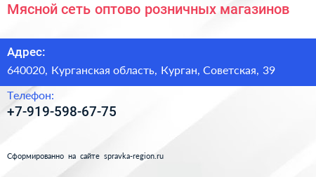 Мясной, сеть оптово-розничных магазинов по адресу 640020, Курганская область, Курган, Советская, 39 в дальнейшем Организация, размещена в следующих категориях: