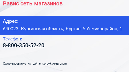 Равис, сеть магазинов по адресу 640023, Курганская область, Курган, 5-й микрорайон, 1 в дальнейшем Организация, размещена в следующих категориях: