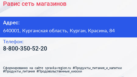 Равис, сеть магазинов по адресу 640001, Курганская область, Курган, Красина, 84 в дальнейшем Организация, размещена в следующих категориях: