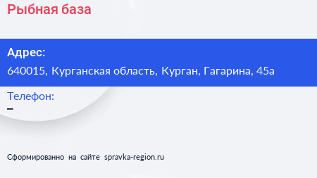 Рыбная база по адресу 640015, Курганская область, Курган, Гагарина, 45а в дальнейшем Организация, размещена в следующих категориях: