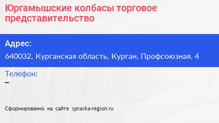 Юргамышские колбасы, торговое представительство по адресу 640032, Курганская область, Курган, Профсоюзная, 4 в дальнейшем Организация, размещена в следующих категориях: