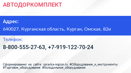 АВТОДОРКОМПЛЕКТ по адресу 640027, Курганская область, Курган, Омская, 82и в дальнейшем Организация, размещена в следующих категориях: