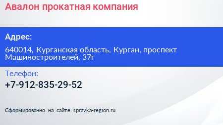 Авалон, прокатная компания по адресу 640014, Курганская область, Курган, проспект Машиностроителей, 37г в дальнейшем Организация, размещена в следующих категориях: