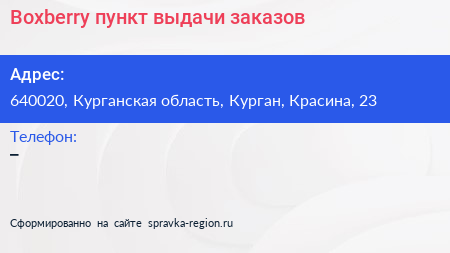 Boxberry, пункт выдачи заказов по адресу 640020, Курганская область, Курган, Красина, 23 в дальнейшем Организация, размещена в следующих категориях: