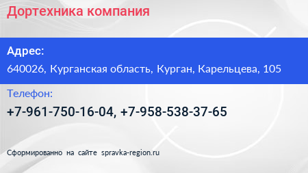 Дортехника, компания по адресу 640026, Курганская область, Курган, Карельцева, 105 в дальнейшем Организация, размещена в следующих категориях: