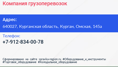 Компания грузоперевозок по адресу 640027, Курганская область, Курган, Омская, 145а в дальнейшем Организация, размещена в следующих категориях: