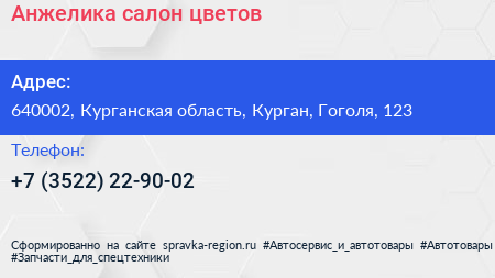 Анжелика, салон цветов по адресу 640002, Курганская область, Курган, Гоголя, 123 в дальнейшем Организация, размещена в следующих категориях: