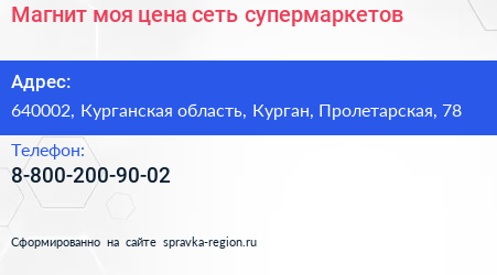Магнит моя цена, сеть супермаркетов по адресу 640002, Курганская область, Курган, Пролетарская, 78 в дальнейшем Организация, размещена в следующих категориях: