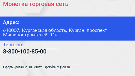 Монетка, торговая сеть по адресу 640007, Курганская область, Курган, проспект Машиностроителей, 11а в дальнейшем Организация, размещена в следующих категориях: