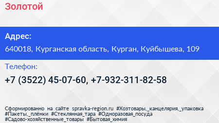 Золотой по адресу 640018, Курганская область, Курган, Куйбышева, 109 в дальнейшем Организация, размещена в следующих категориях: