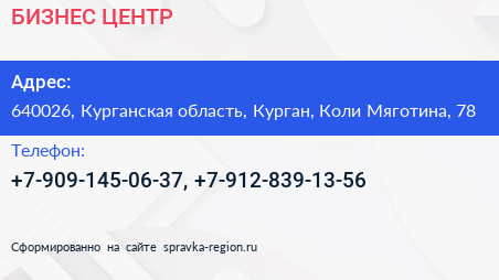 БИЗНЕС-ЦЕНТР по адресу 640026, Курганская область, Курган, Коли Мяготина, 78 в дальнейшем Организация, размещена в следующих категориях: