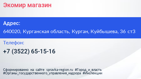 Экомир, магазин по адресу 640020, Курганская область, Курган, Куйбышева, 36 ст3 в дальнейшем Организация, размещена в следующих категориях: