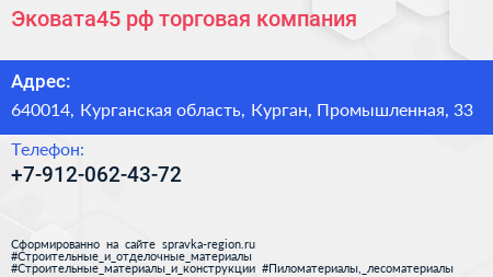 Эковата45.рф, торговая компания по адресу 640014, Курганская область, Курган, Промышленная, 33 в дальнейшем Организация, размещена в следующих категориях: