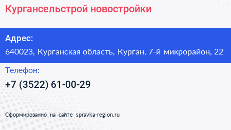Кургансельстрой, новостройки по адресу 640023, Курганская область, Курган, 7-й микрорайон, 22 в дальнейшем Организация, размещена в следующих категориях: