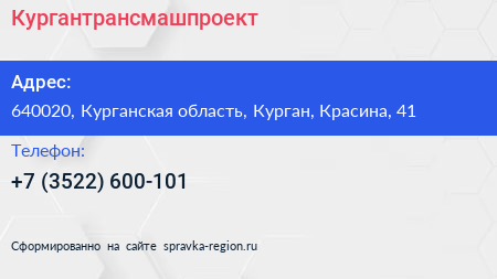 Кургантрансмашпроект по адресу 640020, Курганская область, Курган, Красина, 41 в дальнейшем Организация, размещена в следующих категориях: