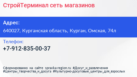 СтройТерминал, сеть магазинов по адресу 640027, Курганская область, Курган, Омская, 74л в дальнейшем Организация, размещена в следующих категориях: