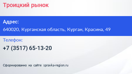 Троицкий рынок по адресу 640020, Курганская область, Курган, Красина, 49 в дальнейшем Организация, размещена в следующих категориях: