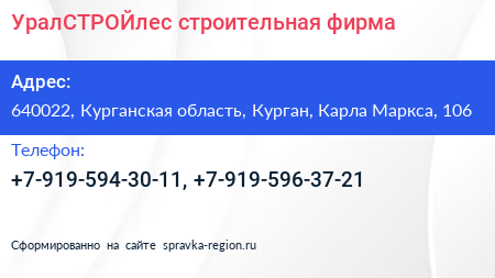 УралСТРОЙлес, строительная фирма по адресу 640022, Курганская область, Курган, Карла Маркса, 106 в дальнейшем Организация, размещена в следующих категориях:
