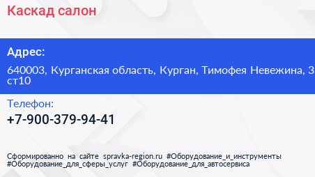 Каскад, салон по адресу 640003, Курганская область, Курган, Тимофея Невежина, 3 ст10 в дальнейшем Организация, размещена в следующих категориях: